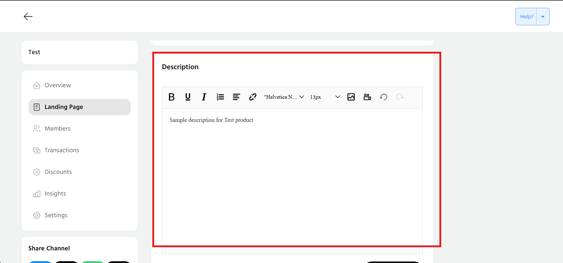 To make your landing page more descriptive, edit the "Description" and add visually appealing images to attract the audience's attention.