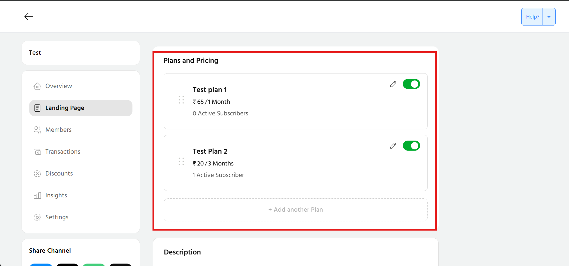 To edit plans and pricing, click on "Plans and Pricing" tab. You can also set multiple plans and pricing.