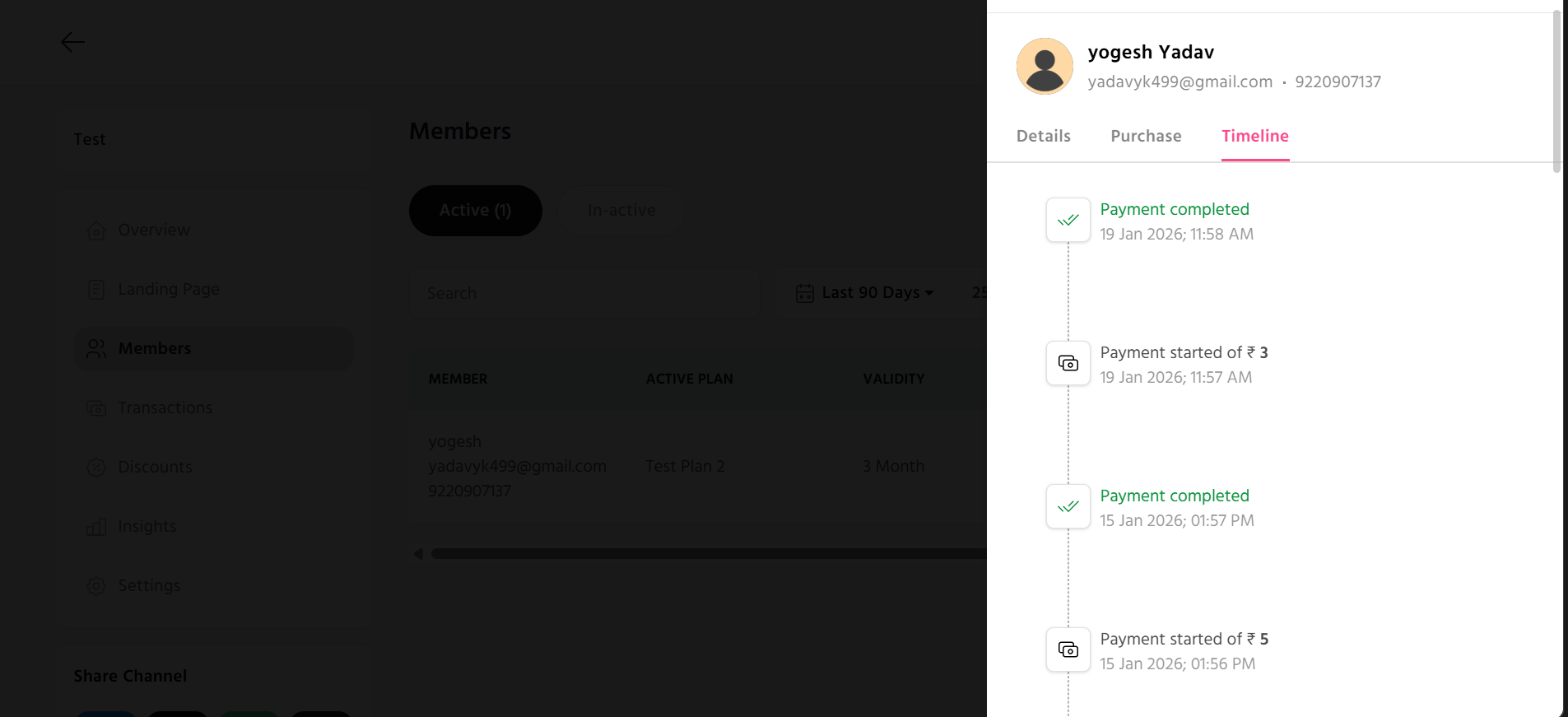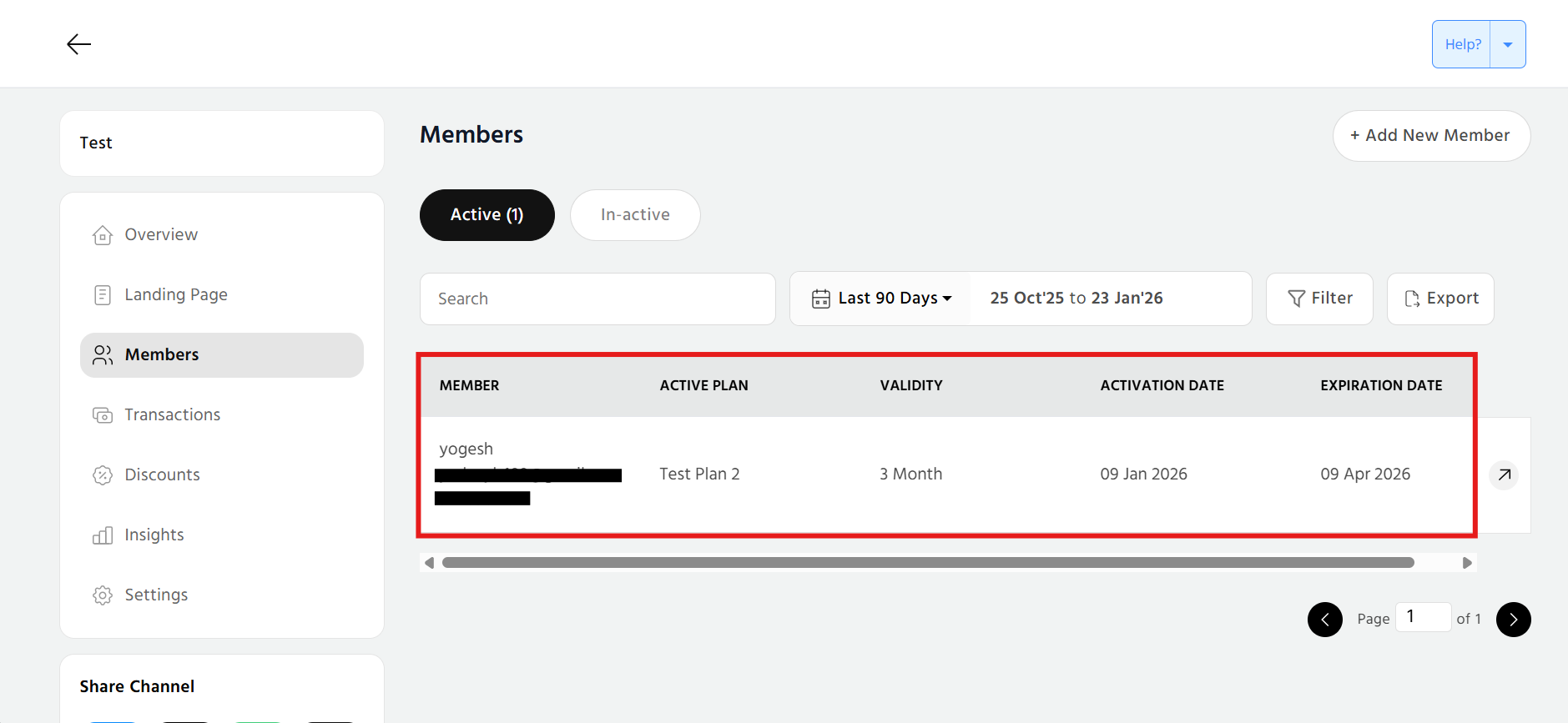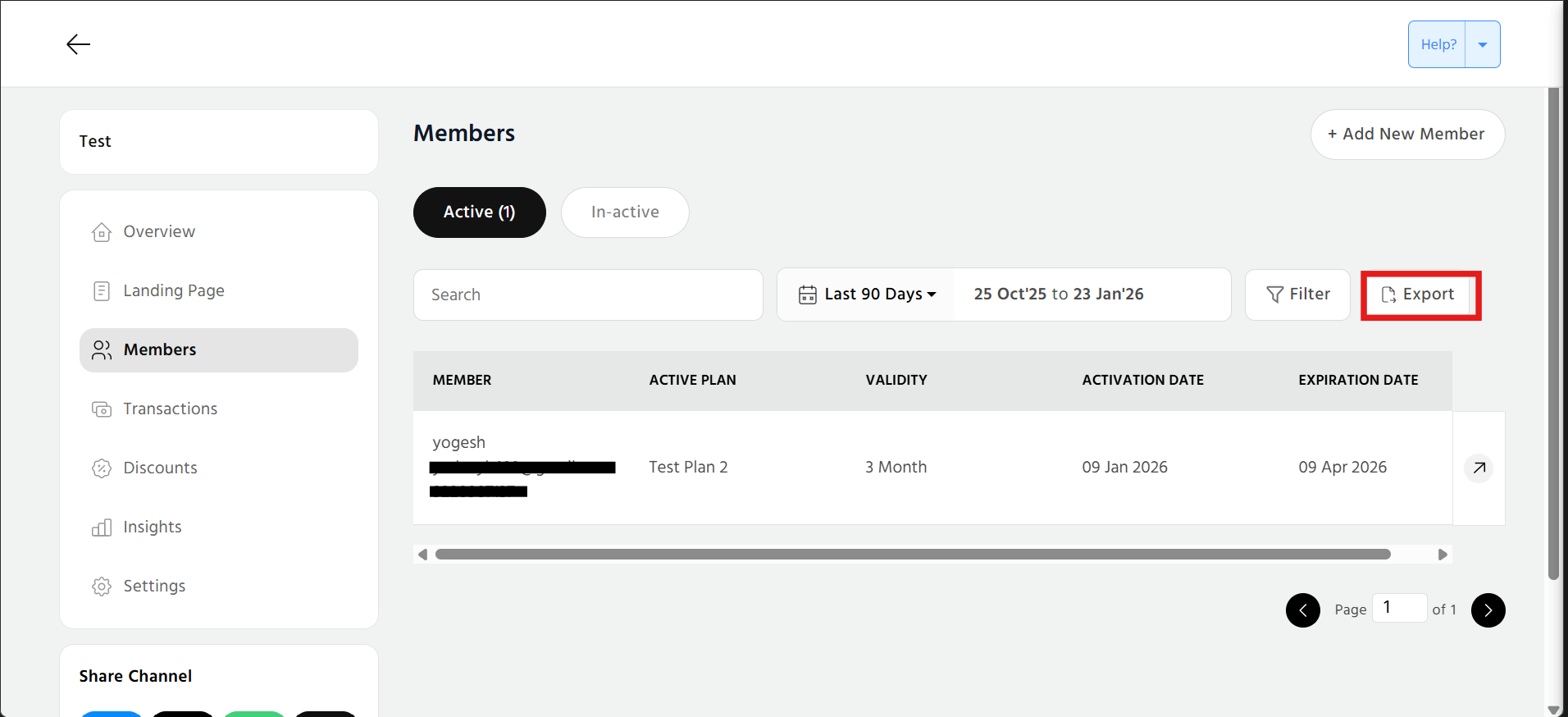 In this section, you can view the list of all the active and inactive members along with their contact details and email address. You can look at data for past 7 days or for a custom period. You can even segregate members based on filters accordingly.