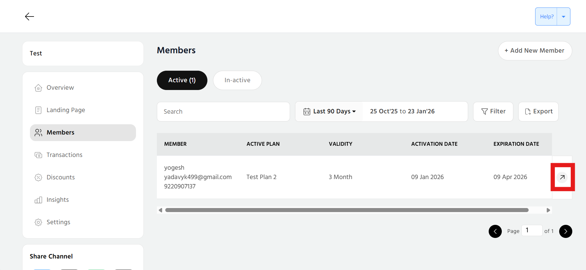 Click on the arrow button, to know more details of a specific member like the amount spent, account information and the active subscription.
