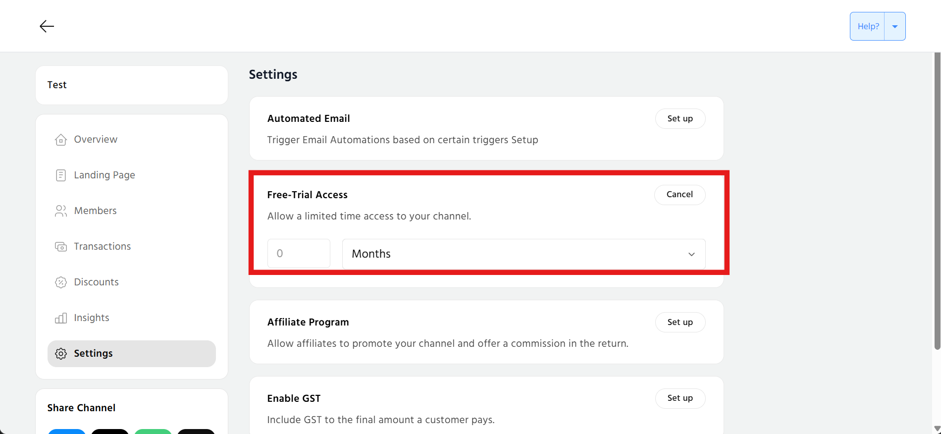 Free-Trial Access allows your potential customers to access your channel for the limited period of time duration set by you. This improves the conversion rate.