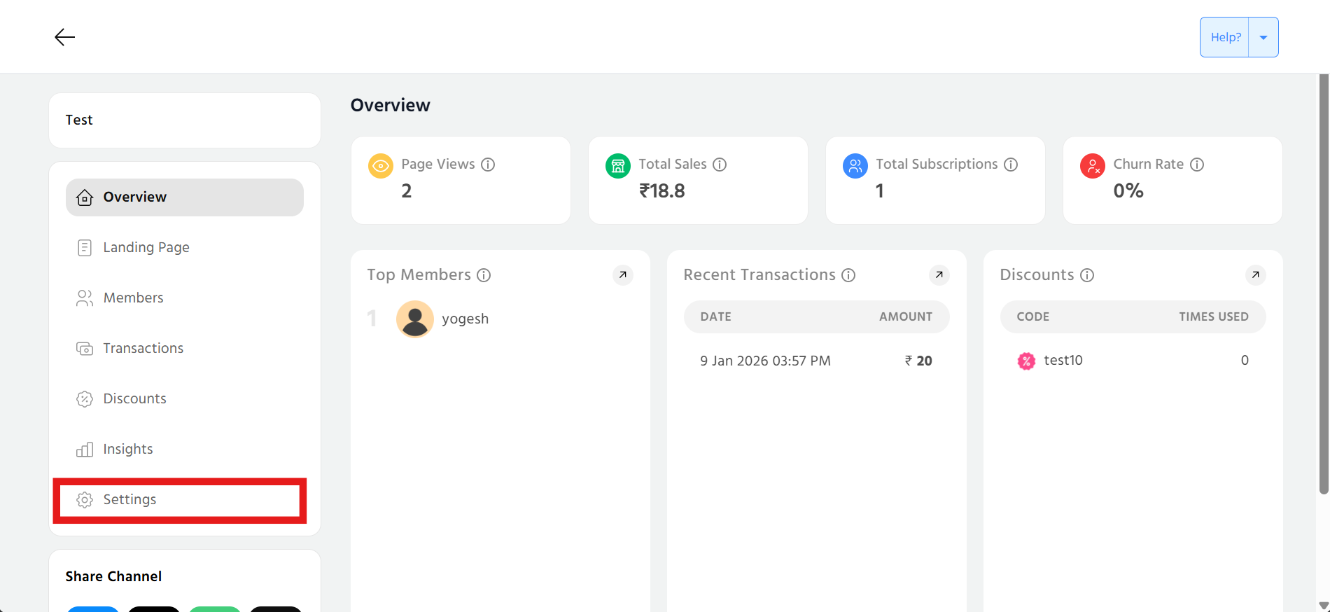 Under the Telegram Channel Dashboard, click on Settings tab.