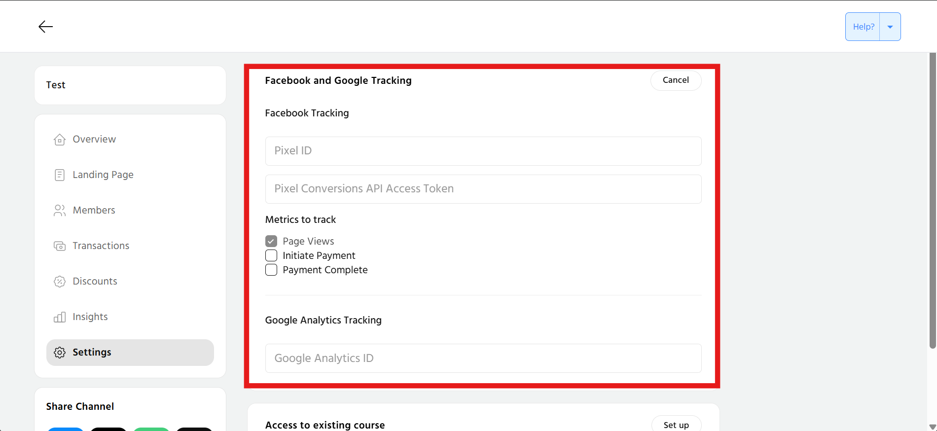 To share access to your existing course, you can directly select from existing course for which to wish to share the access to your customers on every purchase.
