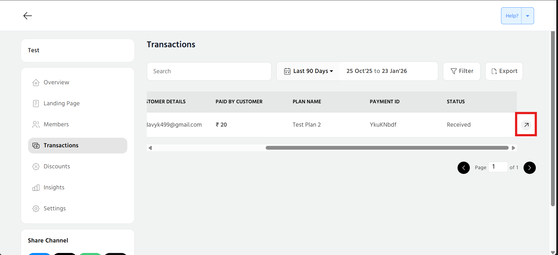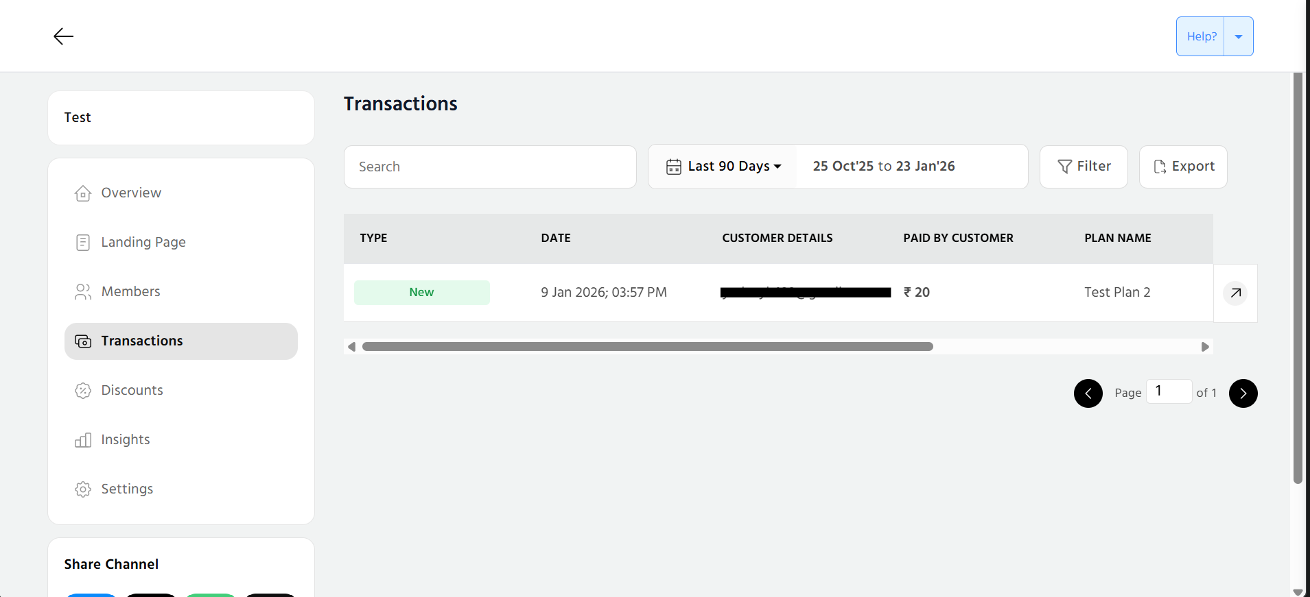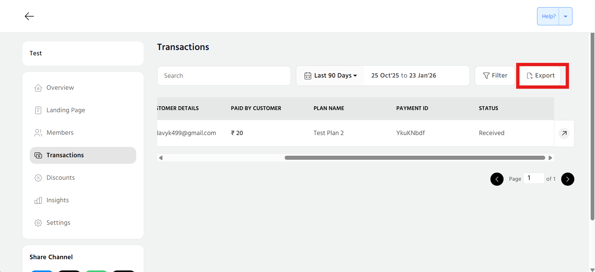 In this section, you can view the list of all the transactions, search, sort as per the dates and apply filter also. You can search for a specific transaction and select the date range as well. Scroll right and you can view customer details, paid by customer, plan name along with the type and date.