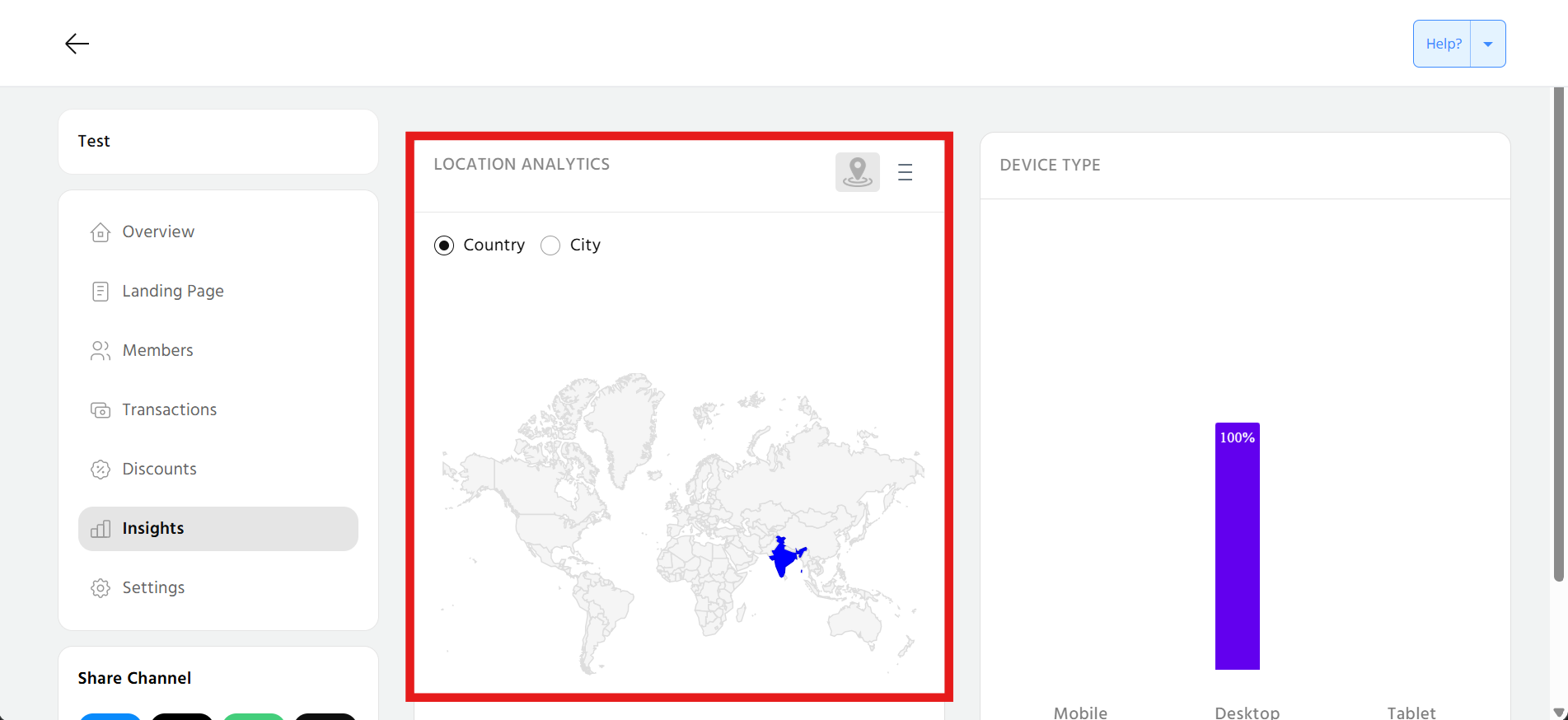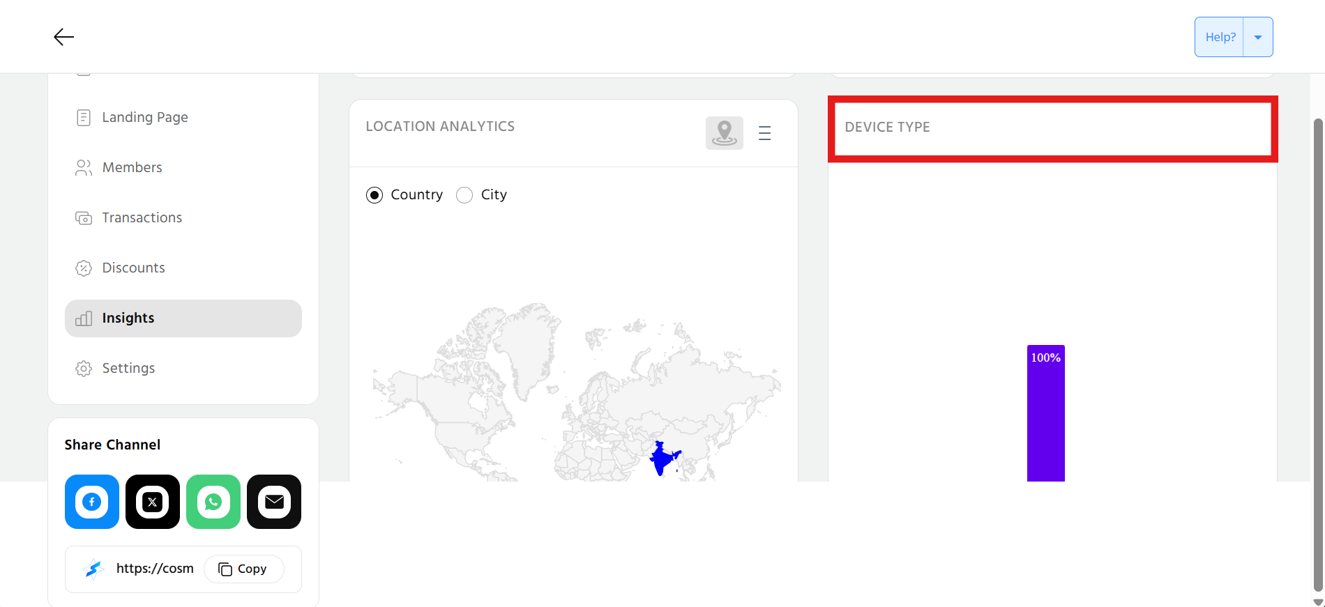 In "Location Analytics" tab, it shows the insights for the demographics location of customers who are viewing your landing page.