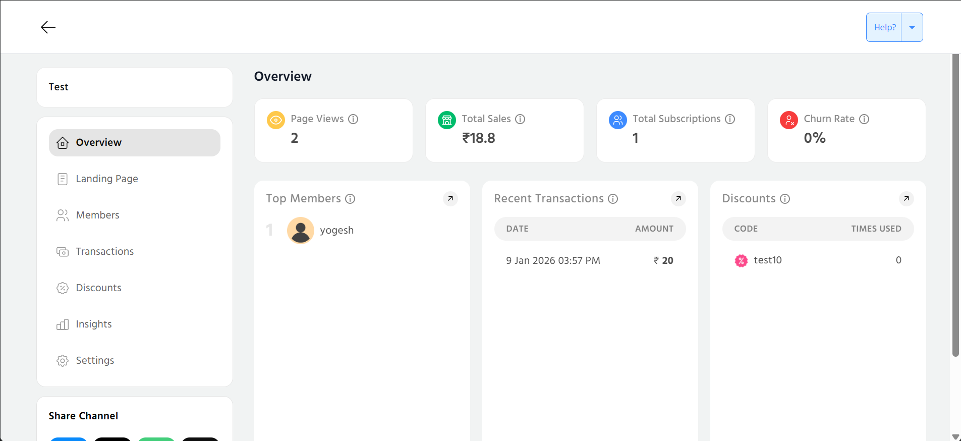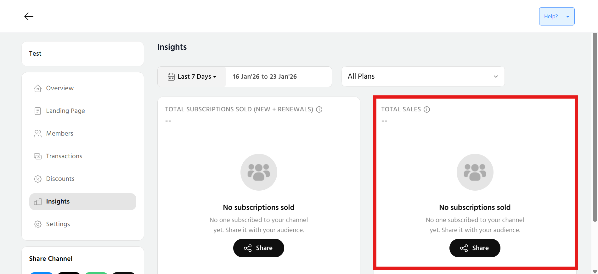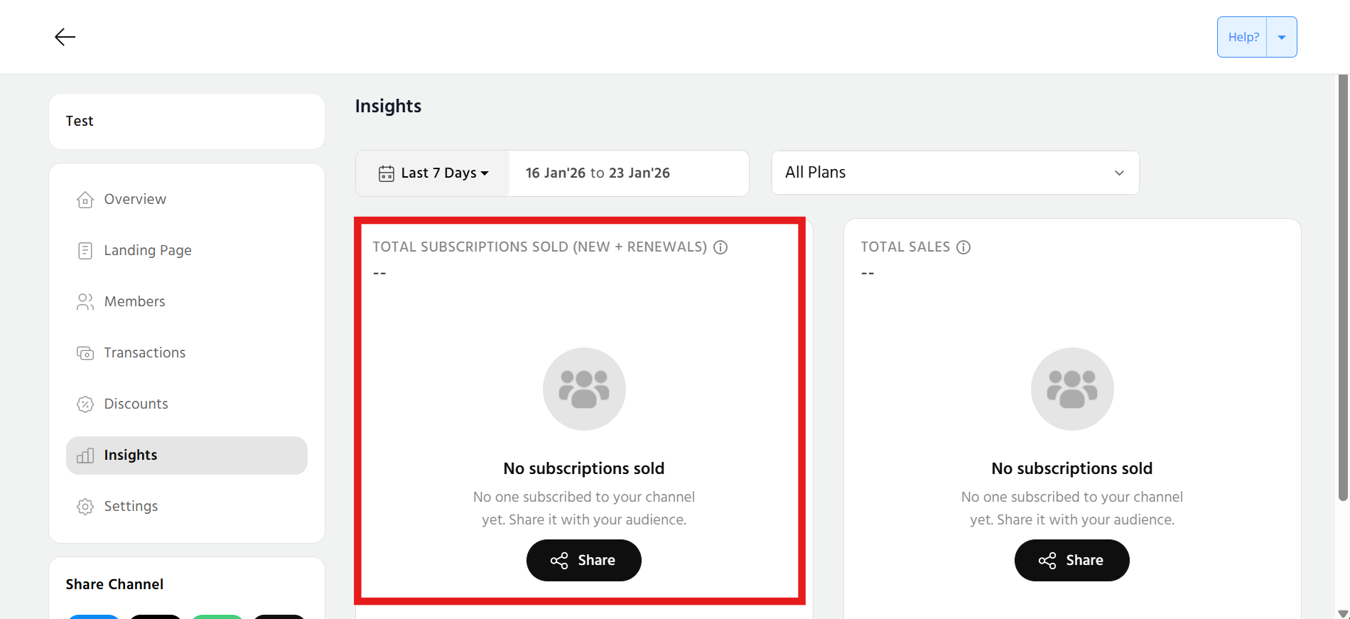 In this article, we will understand the significance of these insights and guide you through the data to make informed decisions. In this section, the charts, data along with filters to sort by days, plans are available to overview insights which will empower you to tailor your channel's content and strategy for maximum impact.
