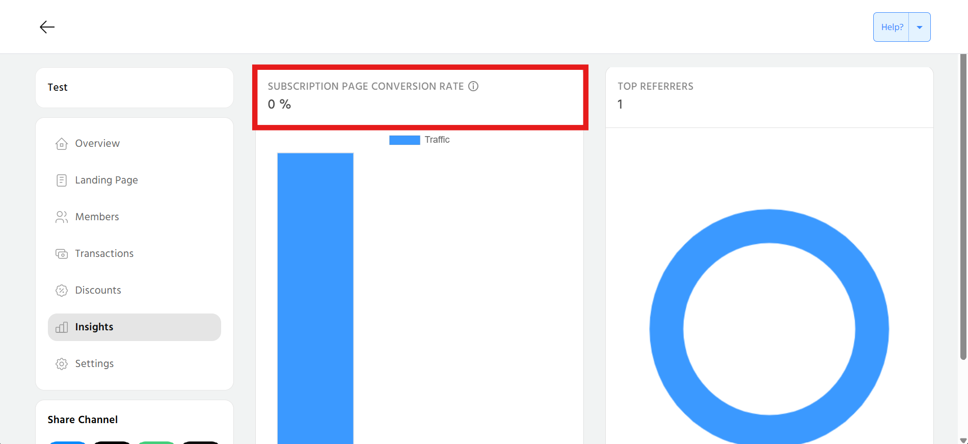 "Subscription Page Conversion Rate" gives insight about the user journey from your landing page to finally subscribing to your Telegram channel.